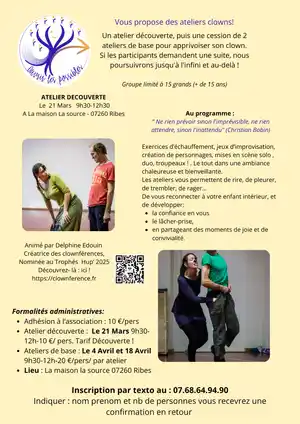 Les ateliers clown à Ribes: Depart 21 Mars 2026